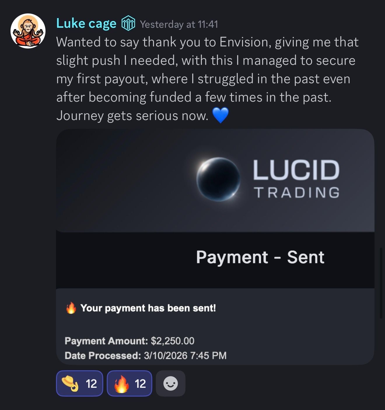 At Envision Markets, we don’t just teach trading. We develop disciplined, elite-level traders through a proven, structured system that delivers real-world results. Whether it’s funded accounts, consistent withdrawals, or full-time transitions, our members are outperforming the masses and winning where most fail.
